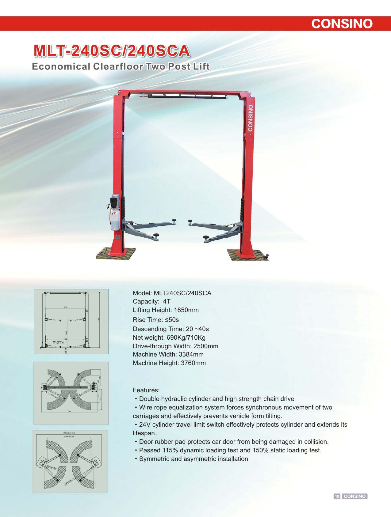 Two-post Clear Floor Car Lift